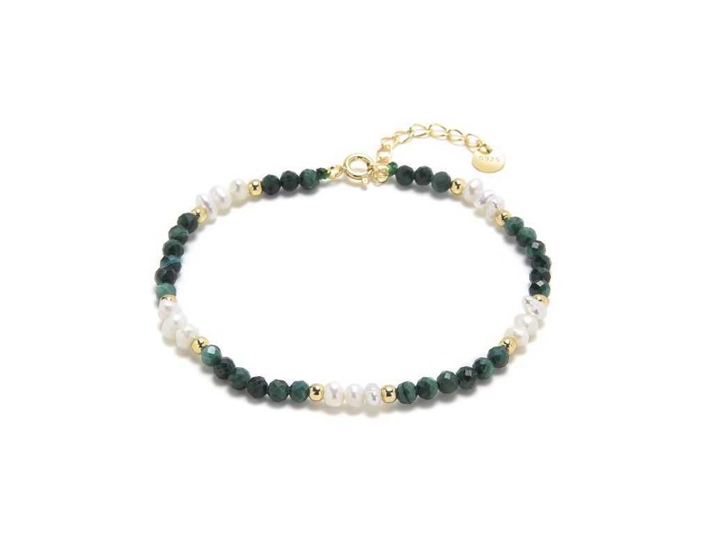 Náramek z minerálních kamenů AURA - MALACHIT, PERLY