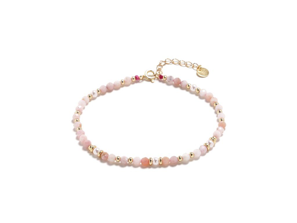 Náramek z minerálních kamenů AURA - RŮŽOVÝ OPÁL, PERLY